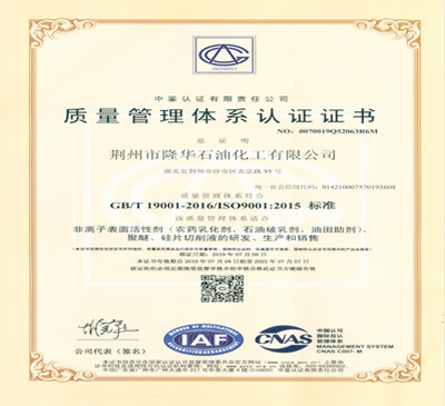荊州市隆華石油化工有限公司是由原湖北省沙市石油化工廠(成立于1966年)改制后組建的有限責任公司,原湖北省沙市石油化工廠是原國家化工部、石油部定點生產農藥乳化劑、原油破乳劑專業廠家之一,改制后新公司注冊資金7000萬人民幣。公司位于三國故里,荊州市經濟技術開發(fā)區。荊州沙市機場便捷快達,漢宜高鐵比鄰而過,黃金水道長江相伴!